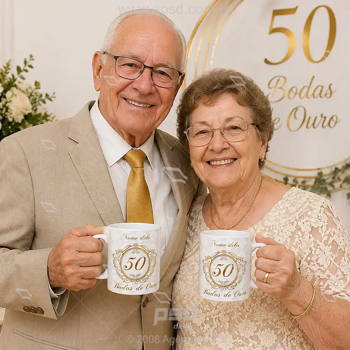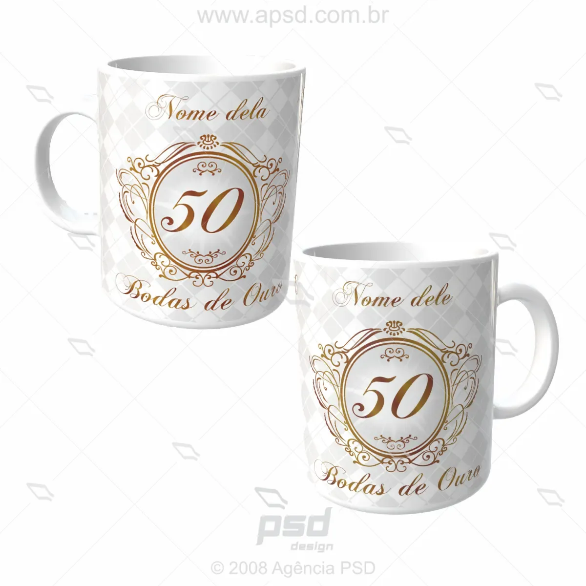 Arte caneca bodas de ouro, arte pronta para usar em suas criações de canecas, ganhe tempo. Comprou, baixou!