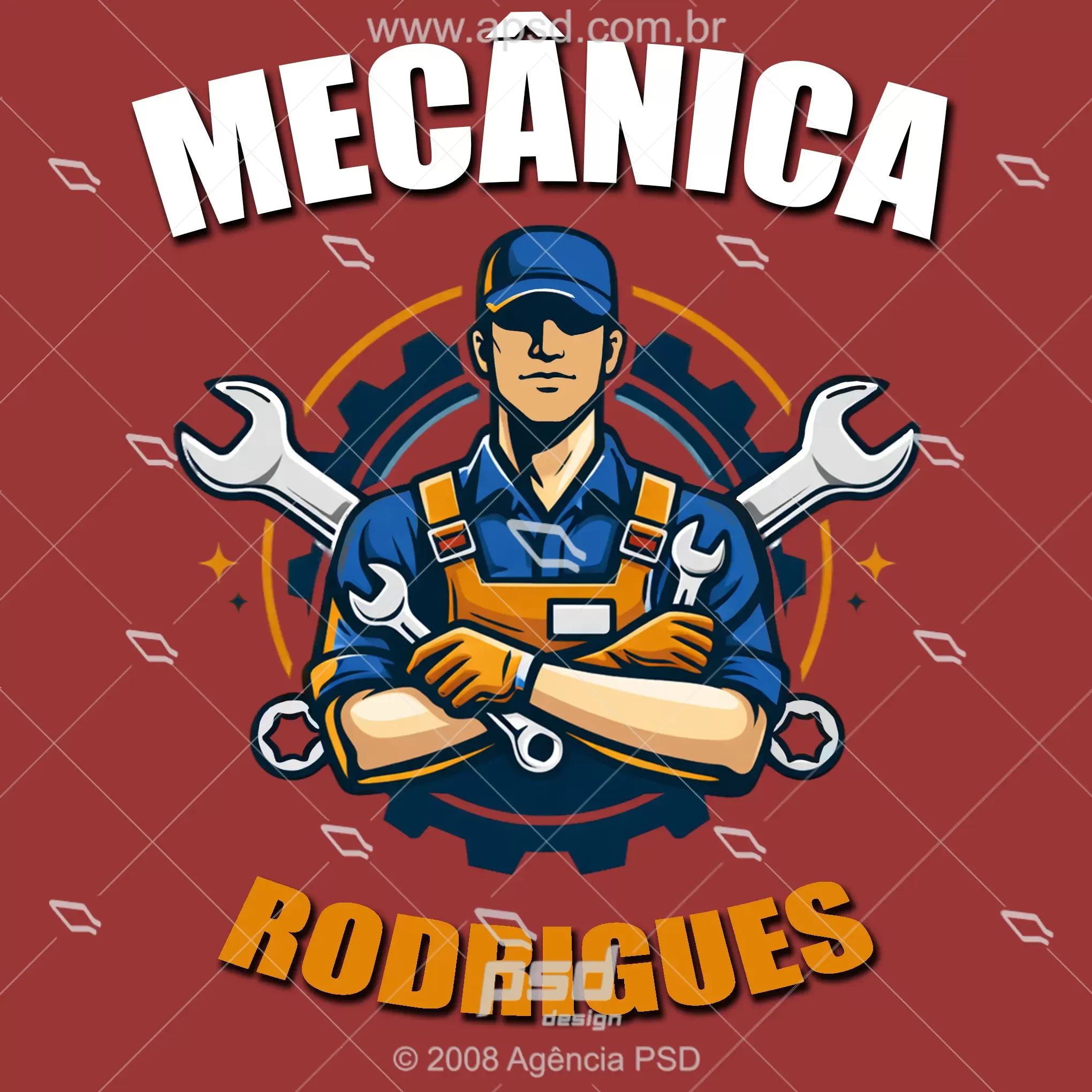 Arte profissional desenvolvida para oficinas mecânicas, mecânicos autônomos e serviços automotivos que buscam uma identidade visual forte, confiável e moderna. Design robusto, com visual limpo e aparência vetorial, ideal para uso comercial.