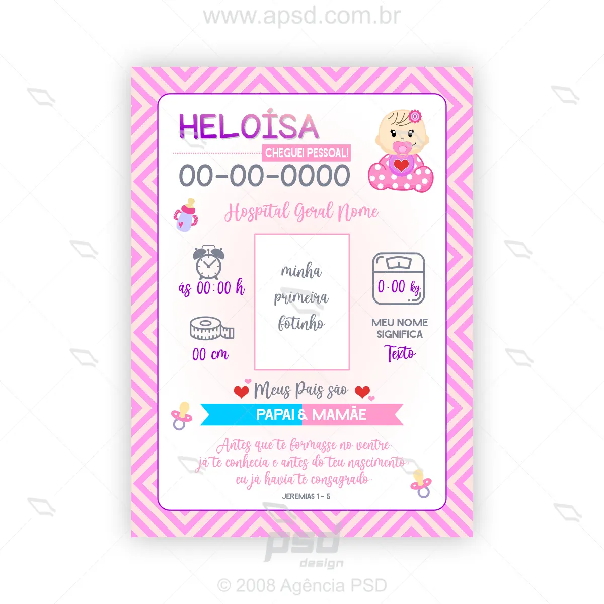 Arte quadro nascimento de bebe menina, modelo para registrar o nascimento do seu filho, arte pronta para editar, ganhe tempo de edição, comprou, baixou!