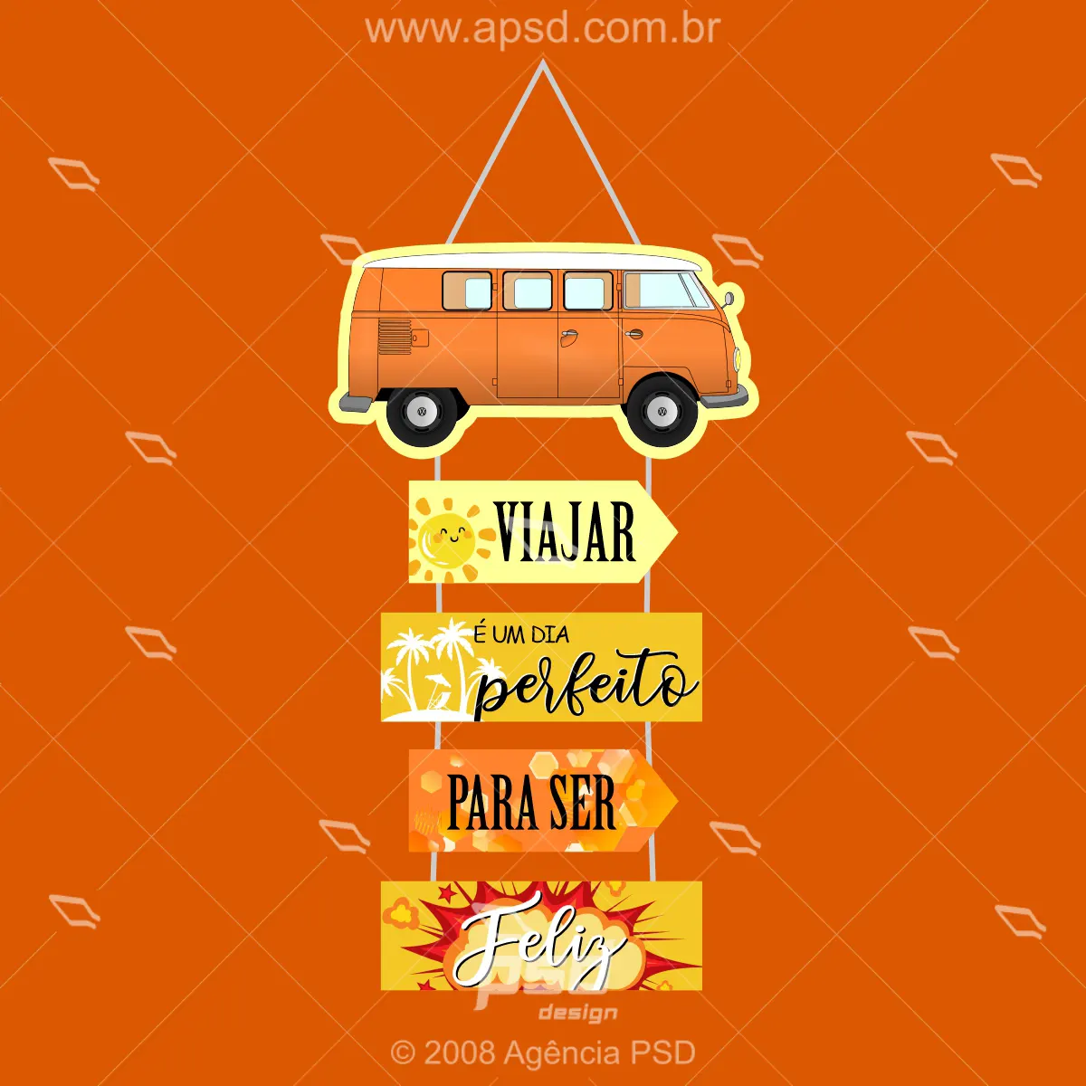 Arte tag viajar, kombi dia perfeito para ser feliz, arte tag para agências pronta para editar e usar em sua campanha, ganhe tempo, comprou, baixou!
