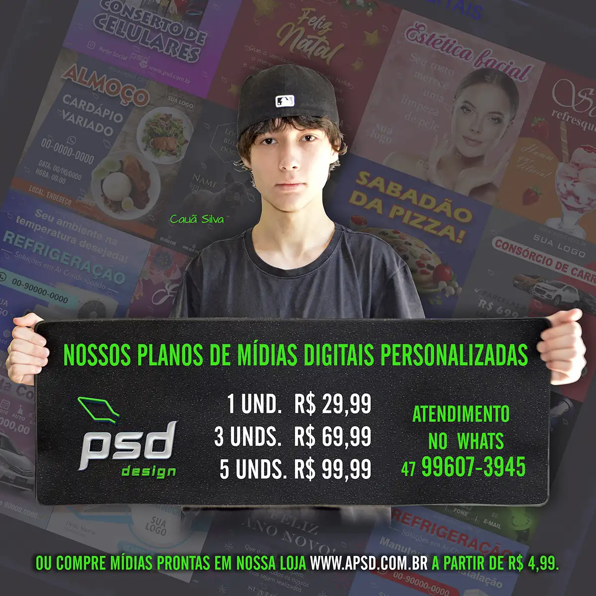 Olá seja bem-vindo(a) a PSD, neste anúncio desenvolvemos sua arte personalizada conforme sua necessidade, colocamos sua logo (deve ser fornecida) , fotos, textos e dados para contatos: fones, e-mails e redes sociais.