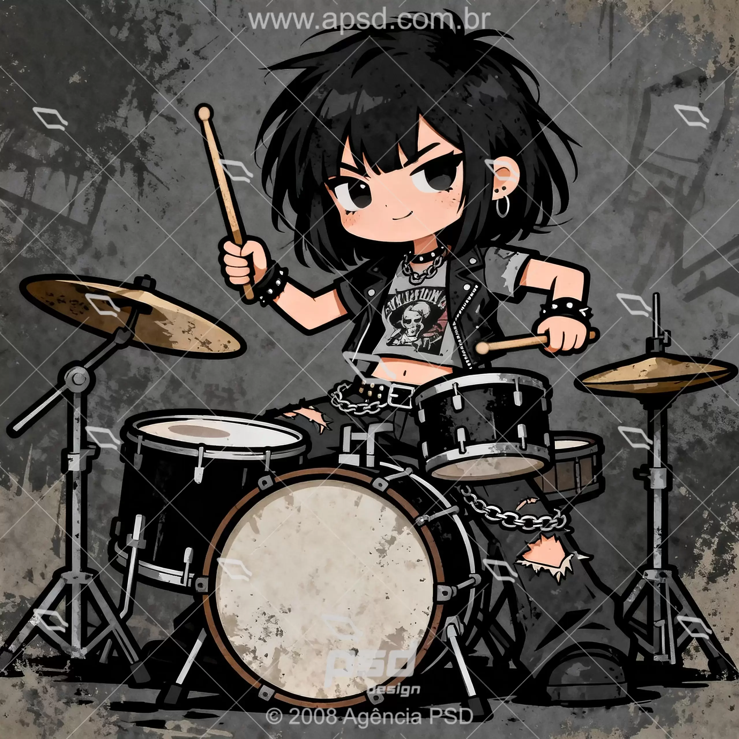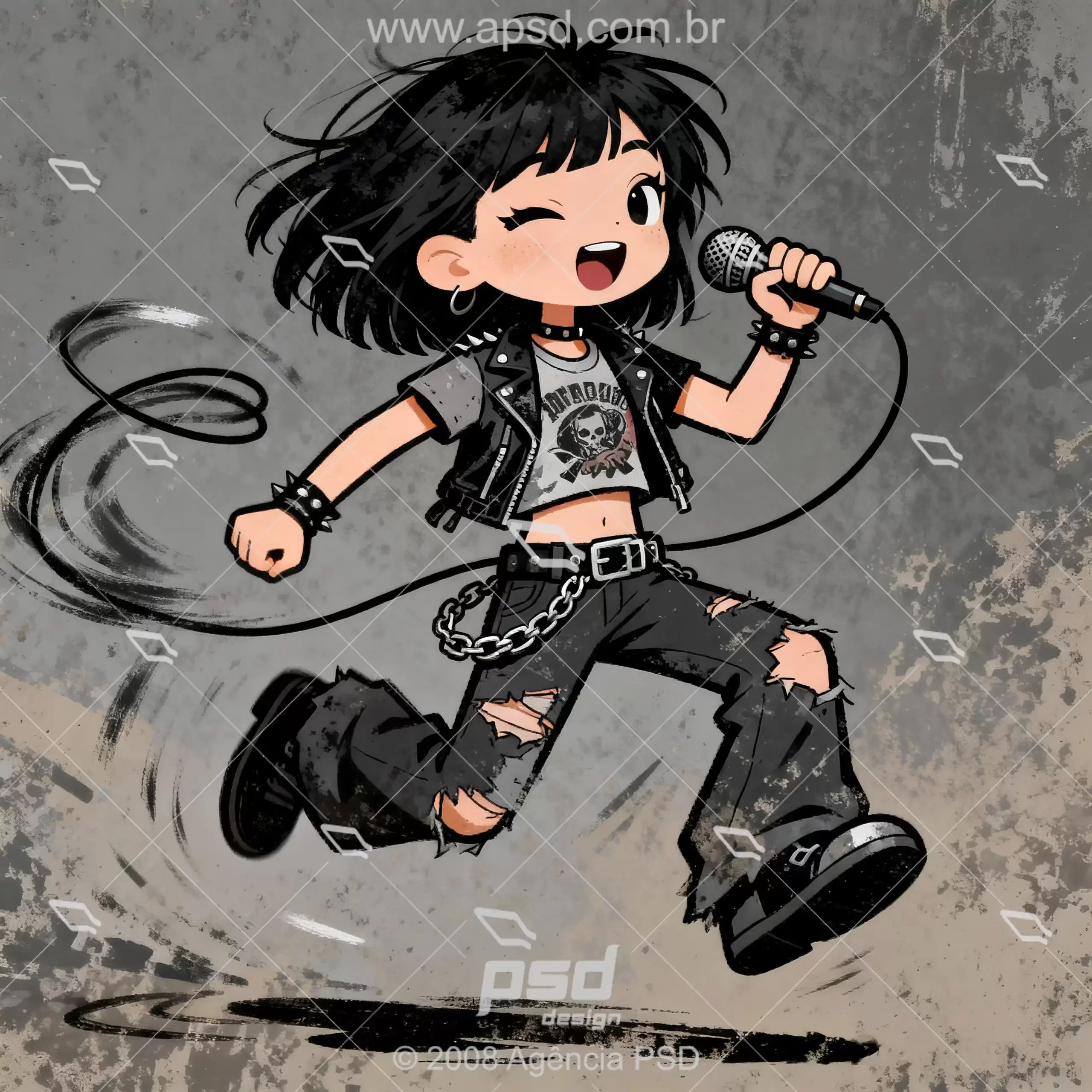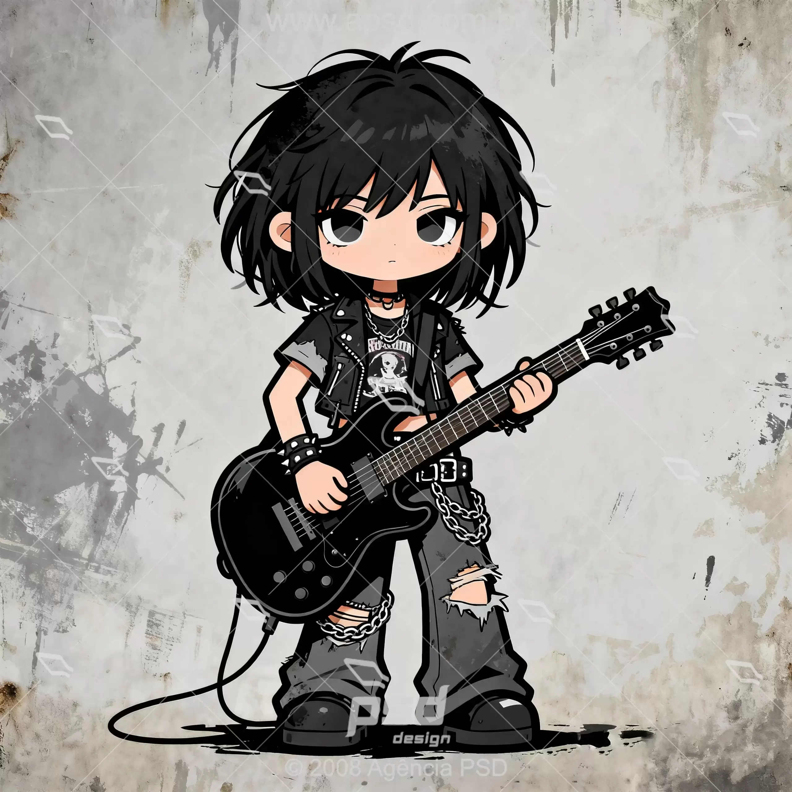 Uma mini musicista cheia de atitude. A Black Hair Musician Girl é um Personagem colecionável com 5 imagens com um visual marcante, vibe alternativa e espírito rock’n’roll raiz — daquele jeito que nunca sai de moda. Pronto em imagem para usar em suas artes e estampas e adesivos.