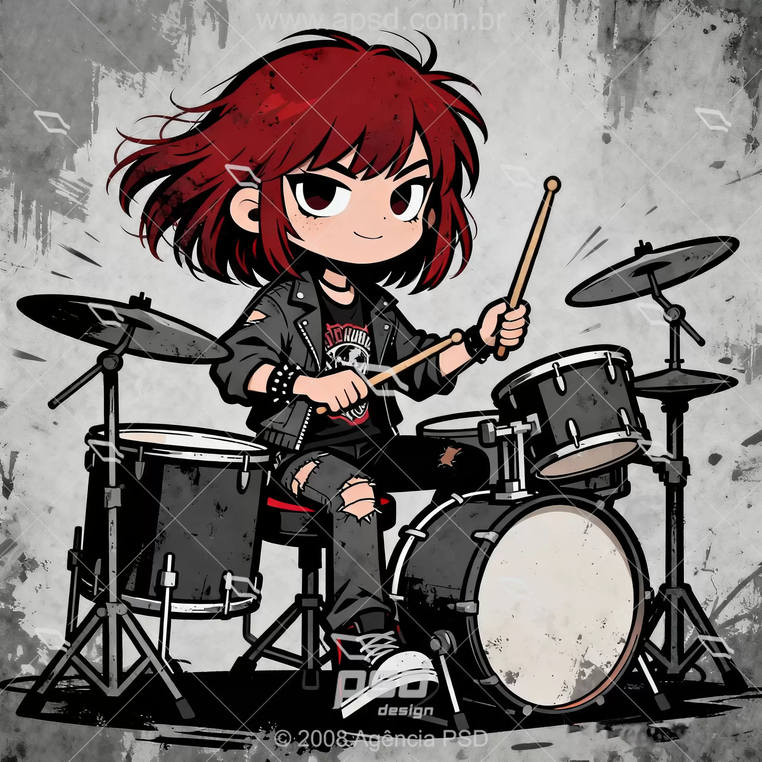 Uma mini musicista cheia de atitude. A Red Hair Musician Girl é um Personagem colecionável com 5 imagens com um visual marcante, vibe alternativa e espírito rock’n’roll raiz — daquele jeito que nunca sai de moda. Cabelo Vermelho, estilo urbano, Pronto em imagem para usar em suas artes e estampas e adesivos.