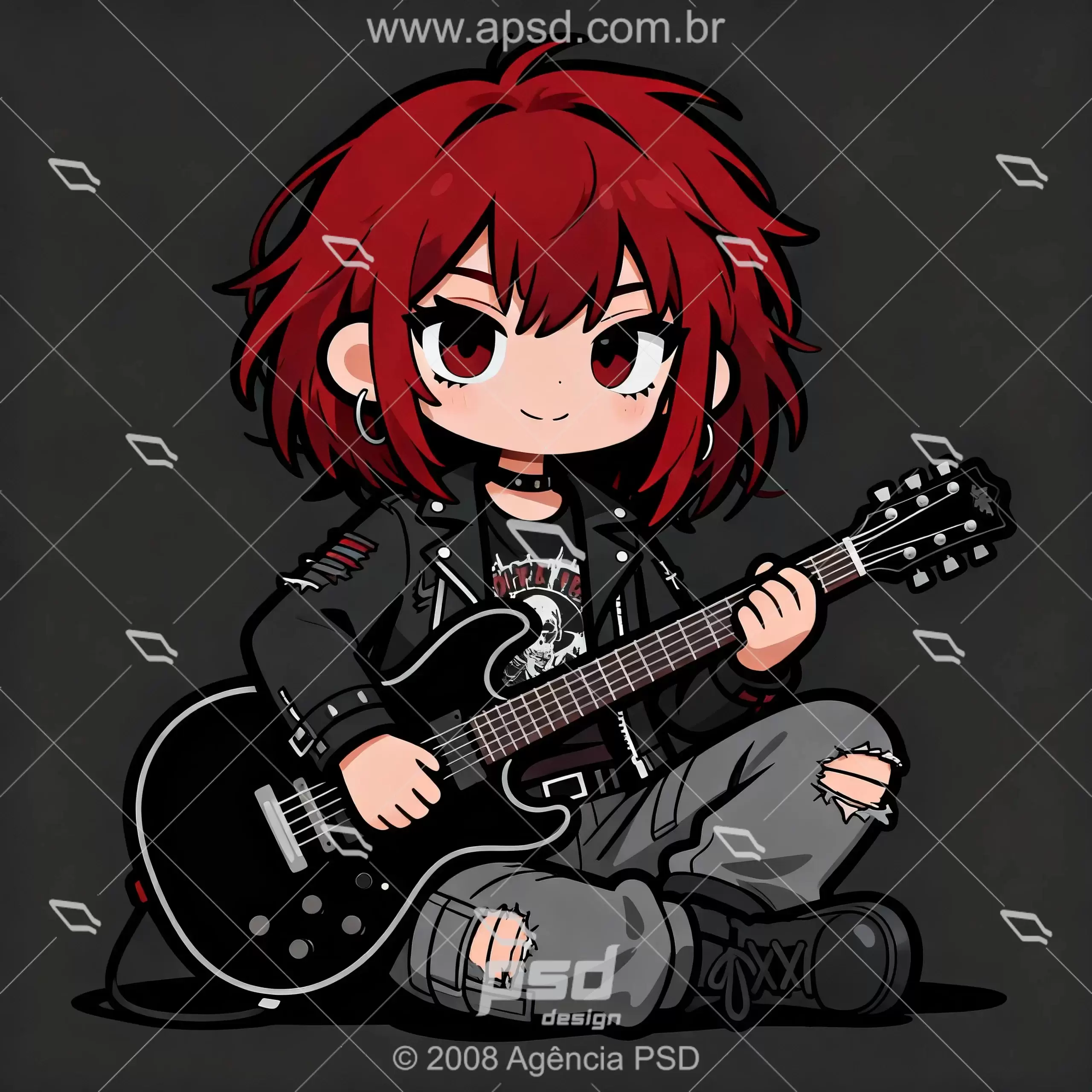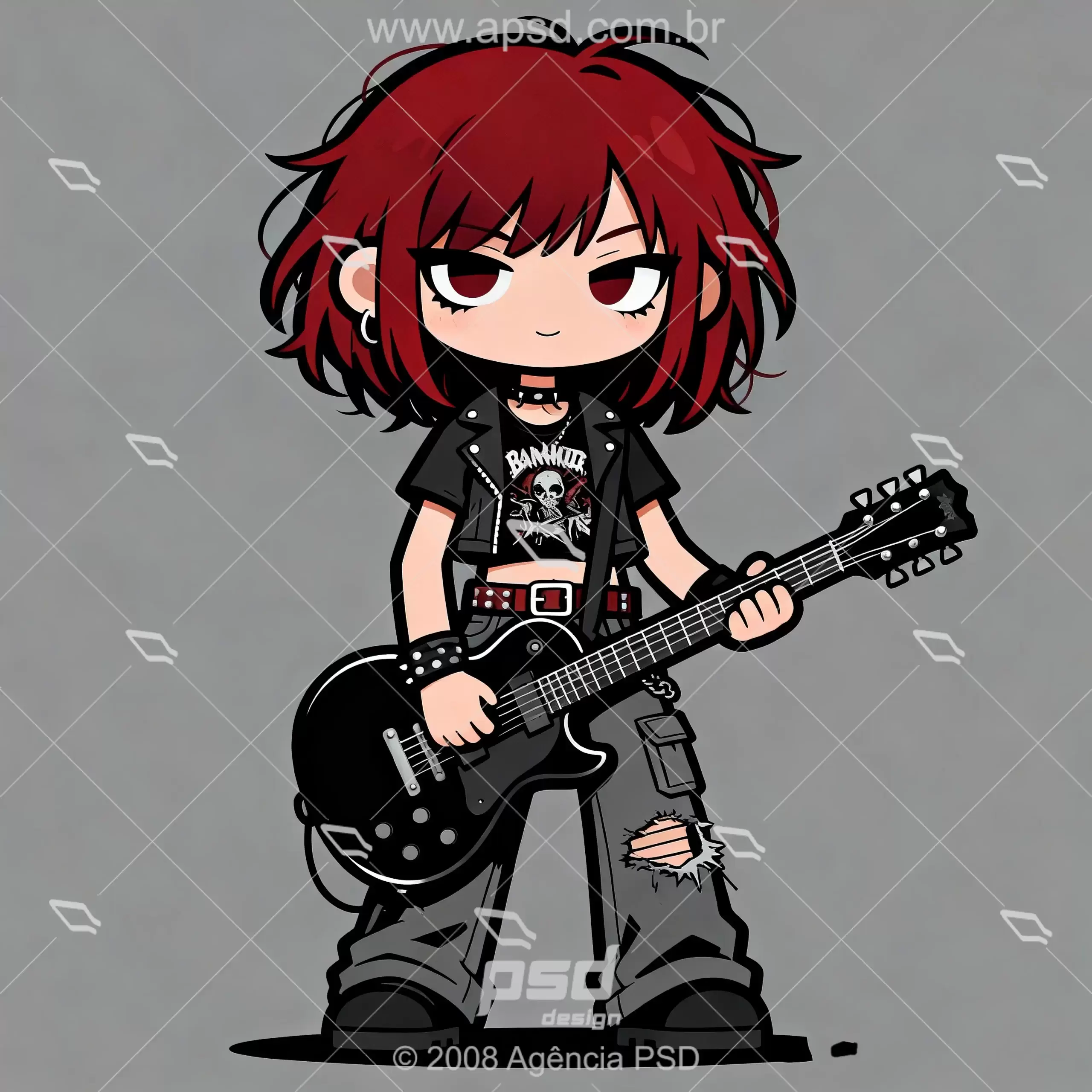 A Red Hair Musician Girl é um Personagem colecionável com 5 imagens com um visual marcante, vibe alternativa e espírito rock’n’roll raiz — daquele jeito que nunca sai de moda. Cabelo Vermelho, estilo urbano, Pronto em imagem para usar em suas artes e estampas e adesivos. Uma mini musicista cheia de atitude.