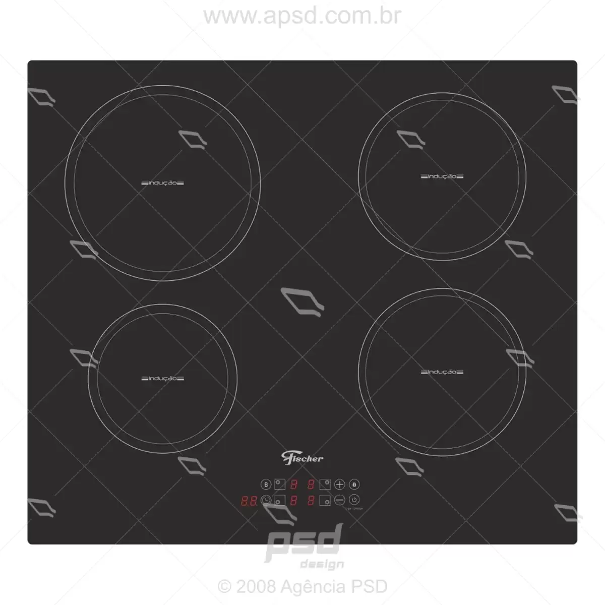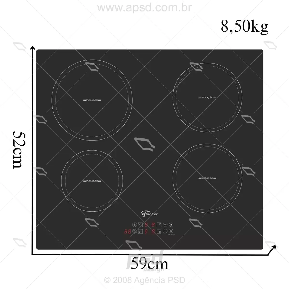 Cooktop de indução Fischer com mesa vitrocerâmica, 9 níveis de potência, função booster, timer até 99 min, painel touch screen e segurança inteligente.