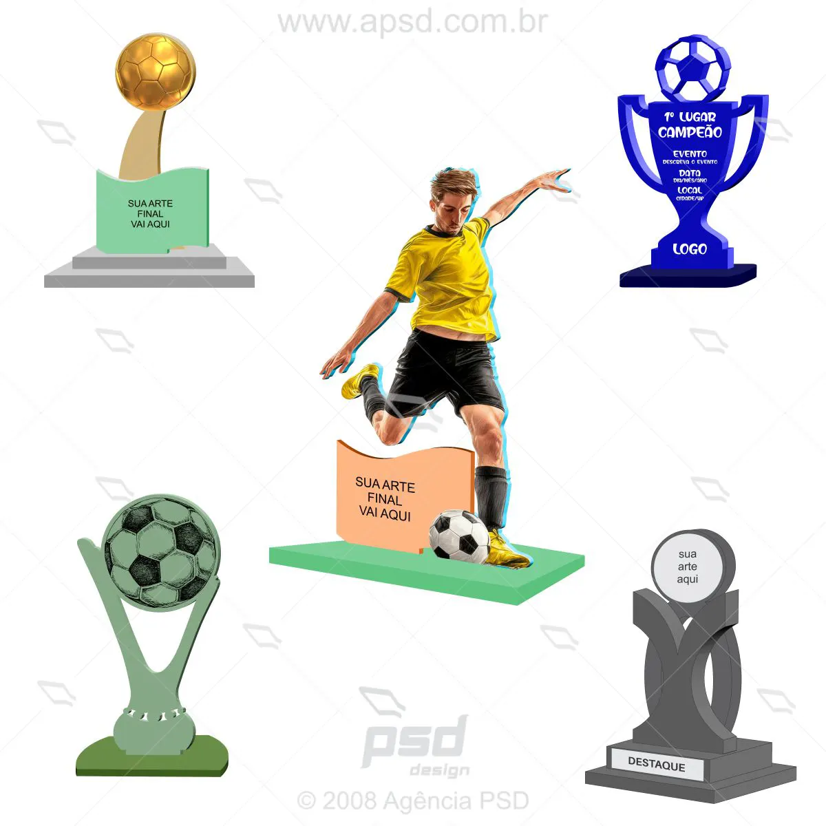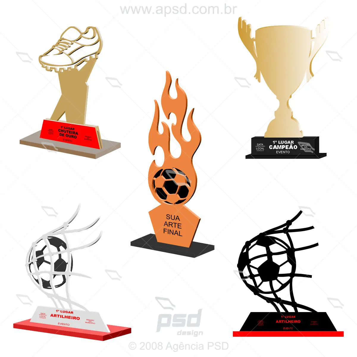 Kit 10 Troféus futebol e futsal para recorte, desenho vetorizado para editar, compor e recortar a laser, monte seus troféus, comprou baixou!