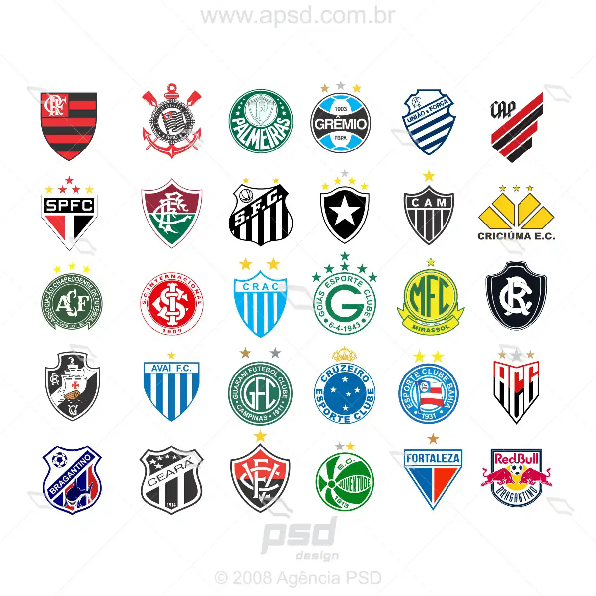 Logo dos 30 maiores clubes de futebol do Brasil série A, PNG e vetorizados para usar no Corel e Photoshop