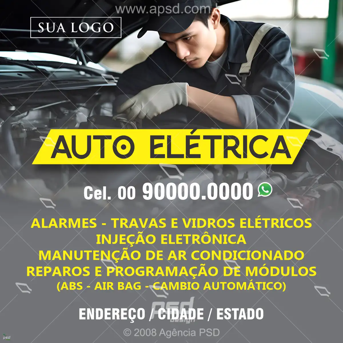 Mídia auto elétrica, arte pronta para compor e usar em suas redes sociais, divulgar sua oficina, ganhe tempo. Comprou, baixou!