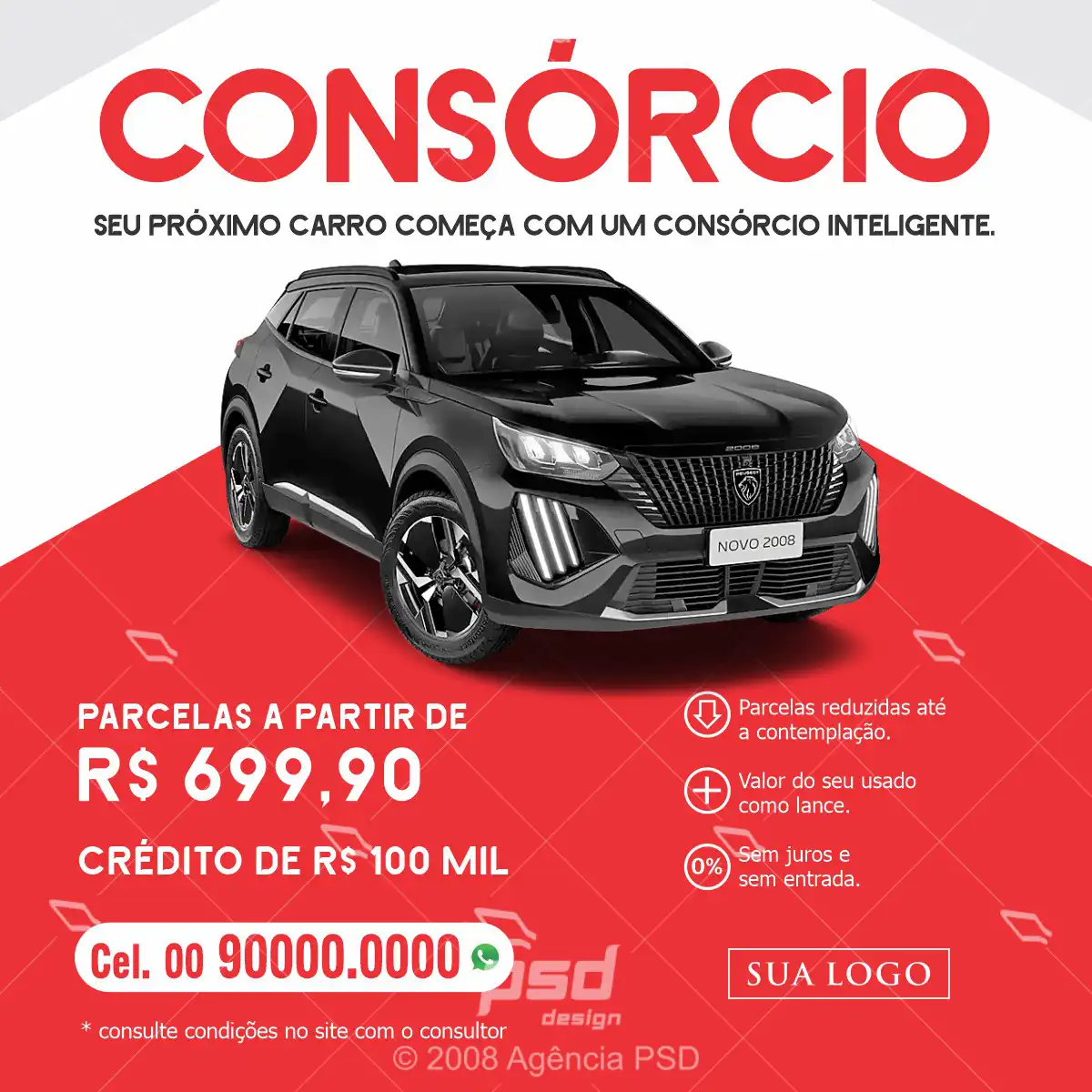 Mídia digital consórcio de automóveis arte pronta, para compor, editar e divulgar e usar em suas redes sociais, comprou, baixou!